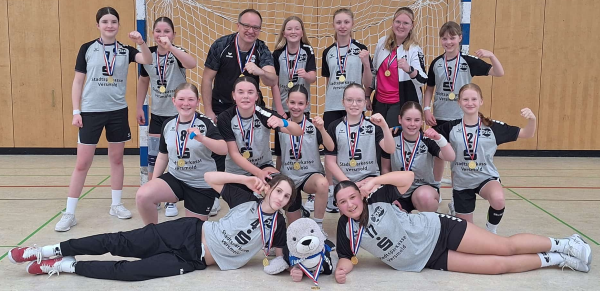 Mit einem 27:13-Heimsieg im einzigen Spiel in der SparkassenArena sicherte sich die weibliche D2 den Staffelsieg in der 2. Kreisklasse. Das Team von Trainer Tim Erdbrügge und Amelie Possehl hatte es mit einer Niederlage gegen Wiedenbrück an Sünne-Peider noch einmal spannend gemacht, sicherte sich dann aber mit zwei deutlichen Siegen den ersten Platz.Herzlichen Glückwunsch!